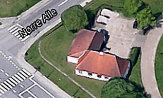 forhave, mens bygningens nordvendte gavl grænser helt op til Overby