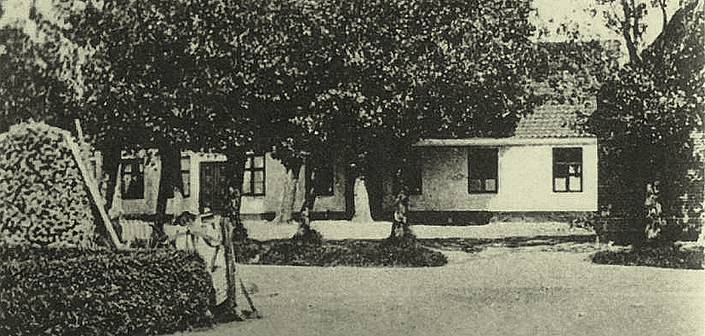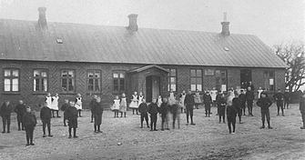 den så ud omkring 1940. Den nedlagte skolebygningen, som i dag er i