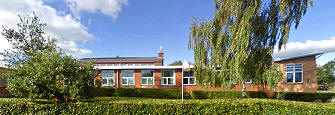 Rytterskolen, som ligger på hjørnet af Overbyvej og Overby Skovvej, er omgivet