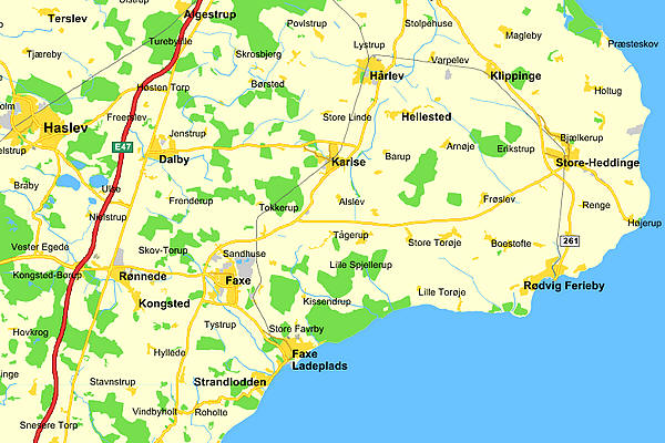 Store Spjellerup og Store Torøje hører i dag til Faxe Kommune, og Lyderslev